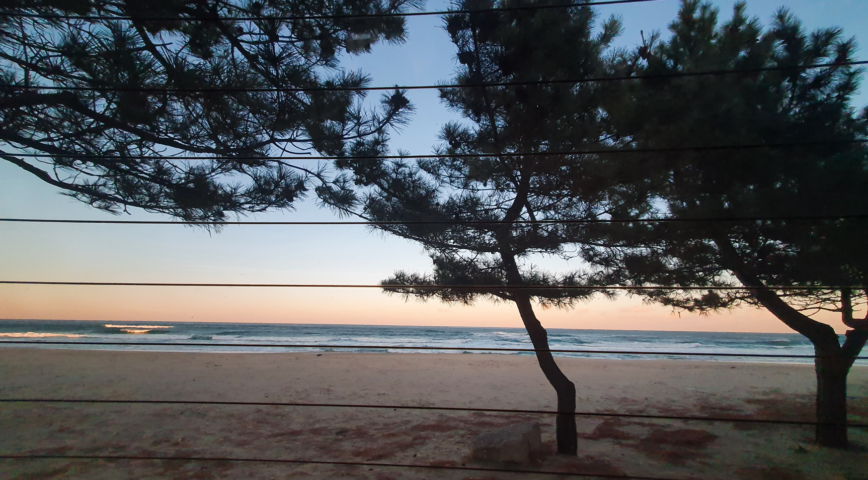 열심히 뒷자리 평탄화 세팅 하고 잠시 앉아서 차안에서 바라보는 바닷가 모습, 이때도 파도 소리는 ASMR처럼 들려옵니다.