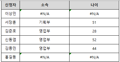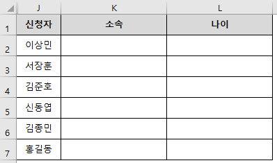 - 각 행별 해당되는 신청자 이름입니다. 즉, 첫번째 행에서는 이상민이고, 두번째 행에서는 서장훈입니다.