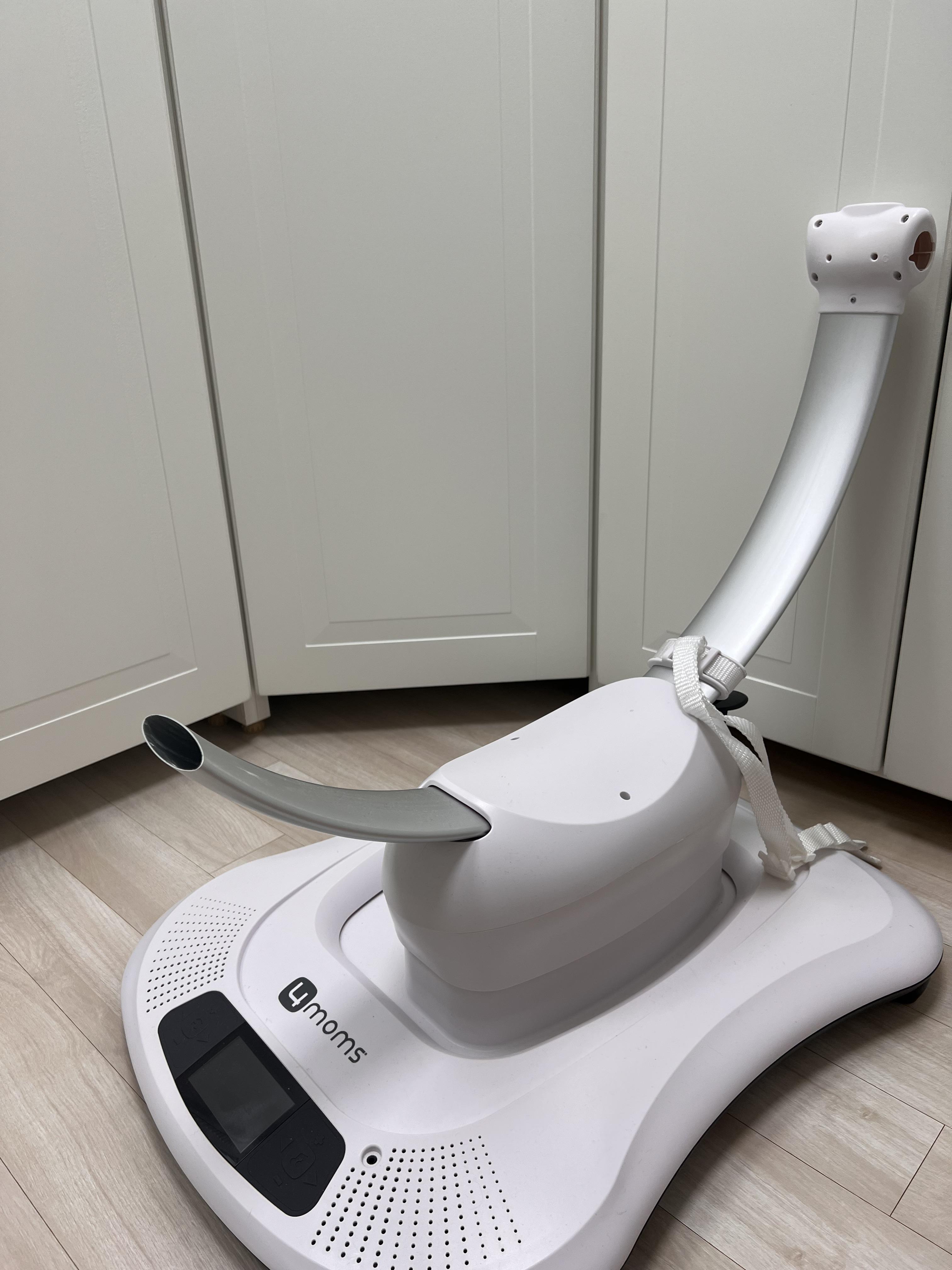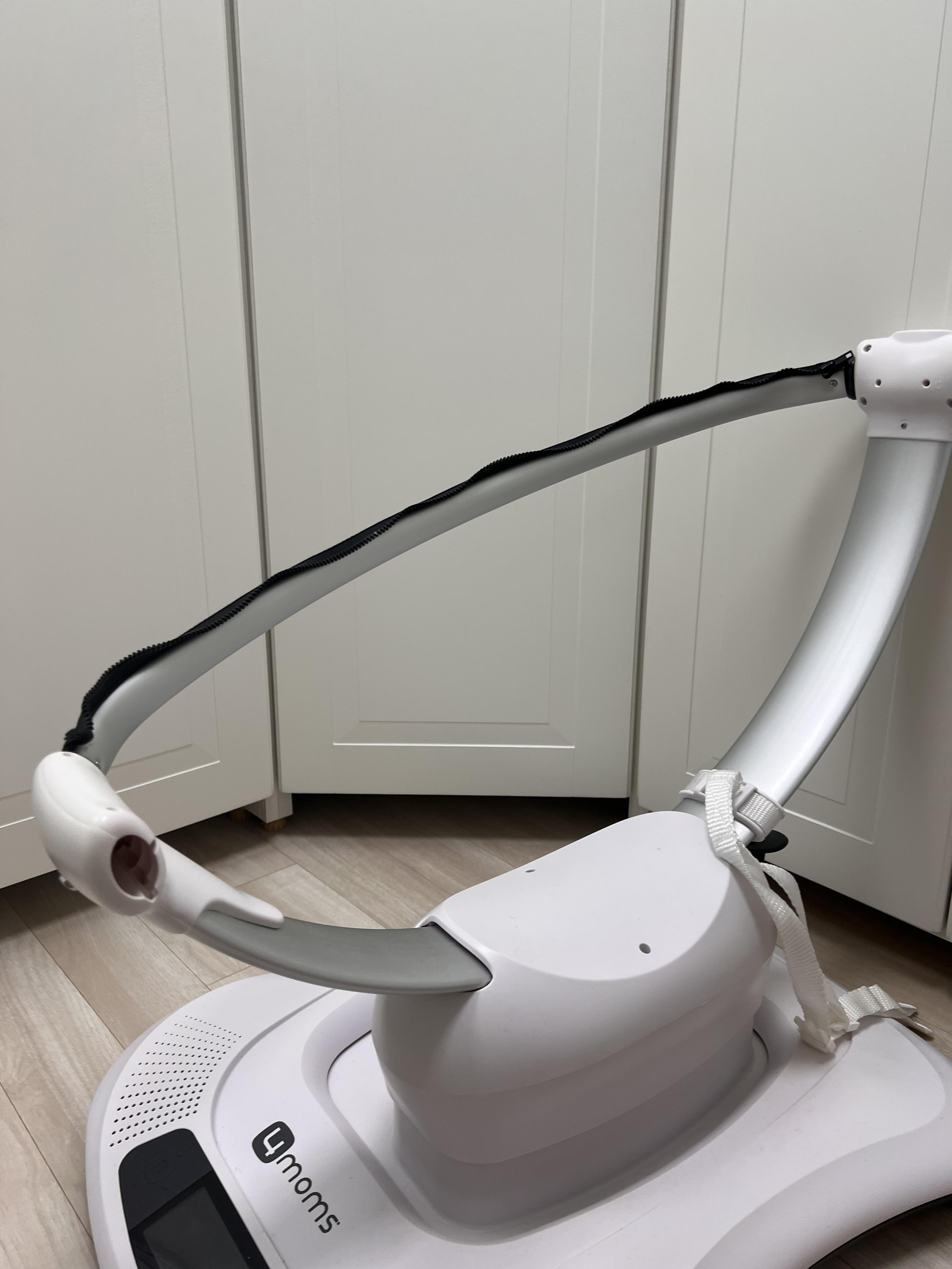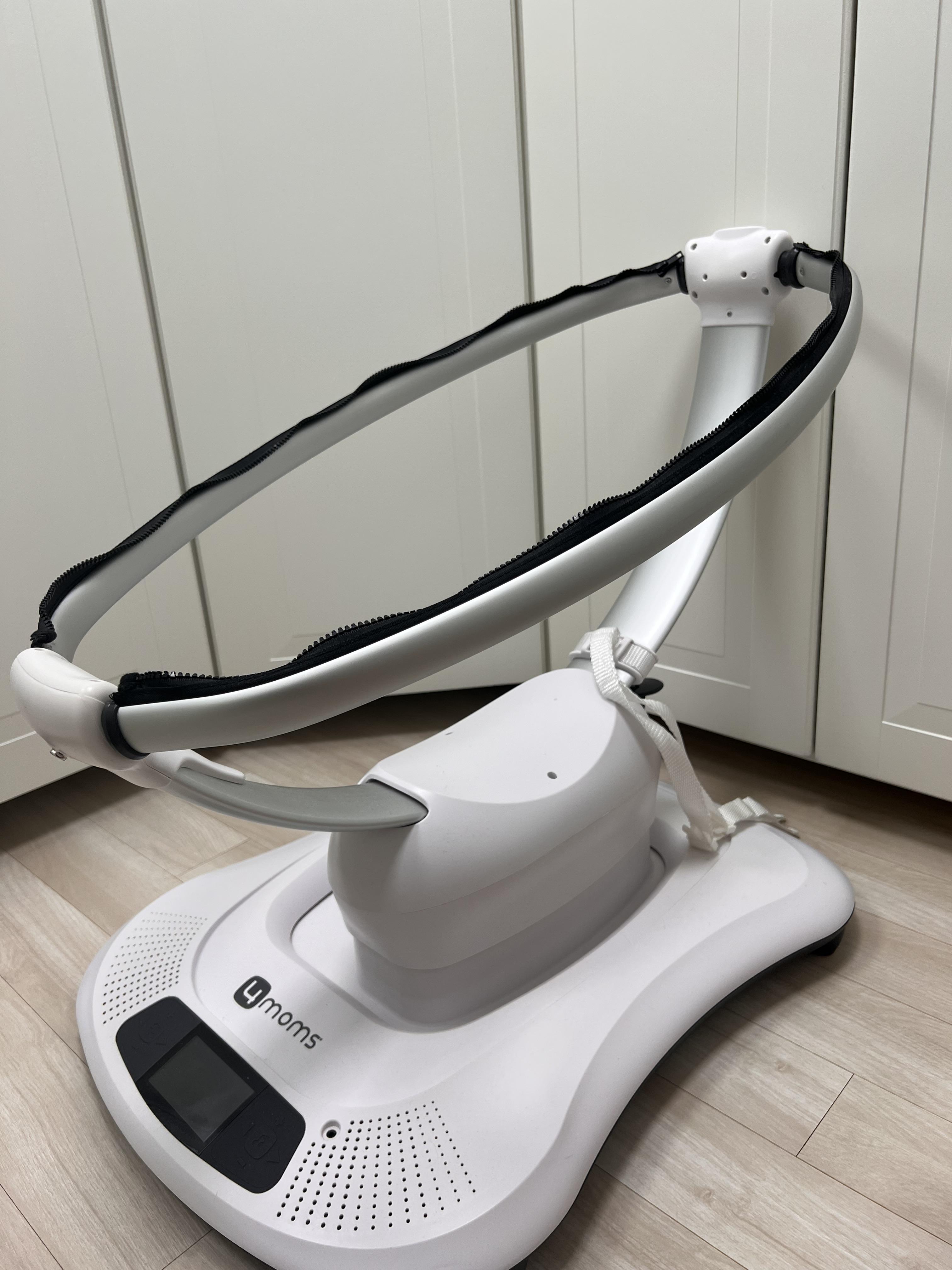 지퍼 부분에 시트의 지퍼를 연결해주고 나서 위에 모빌도 연결해주면 완성입니다. 이제 전원을 연결하고 저속도부터 다양한 움직임 모드를 아기에게 체험시키면 됩니다.