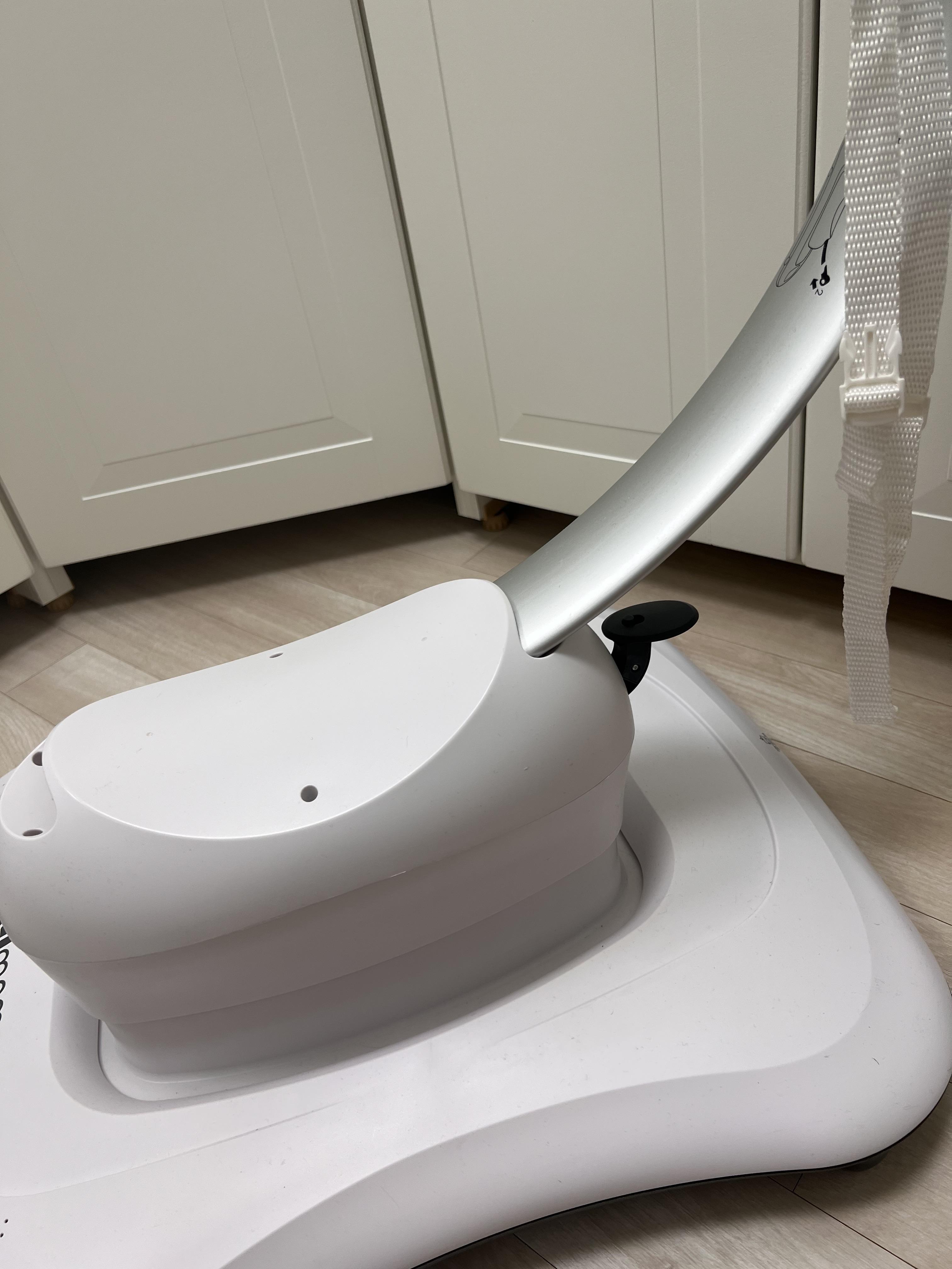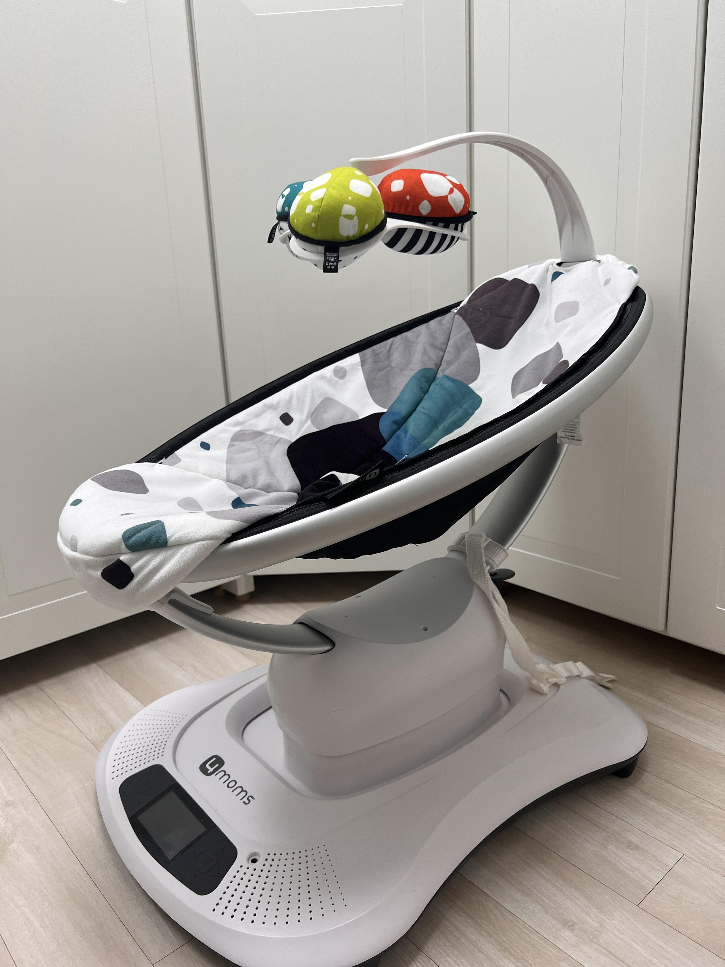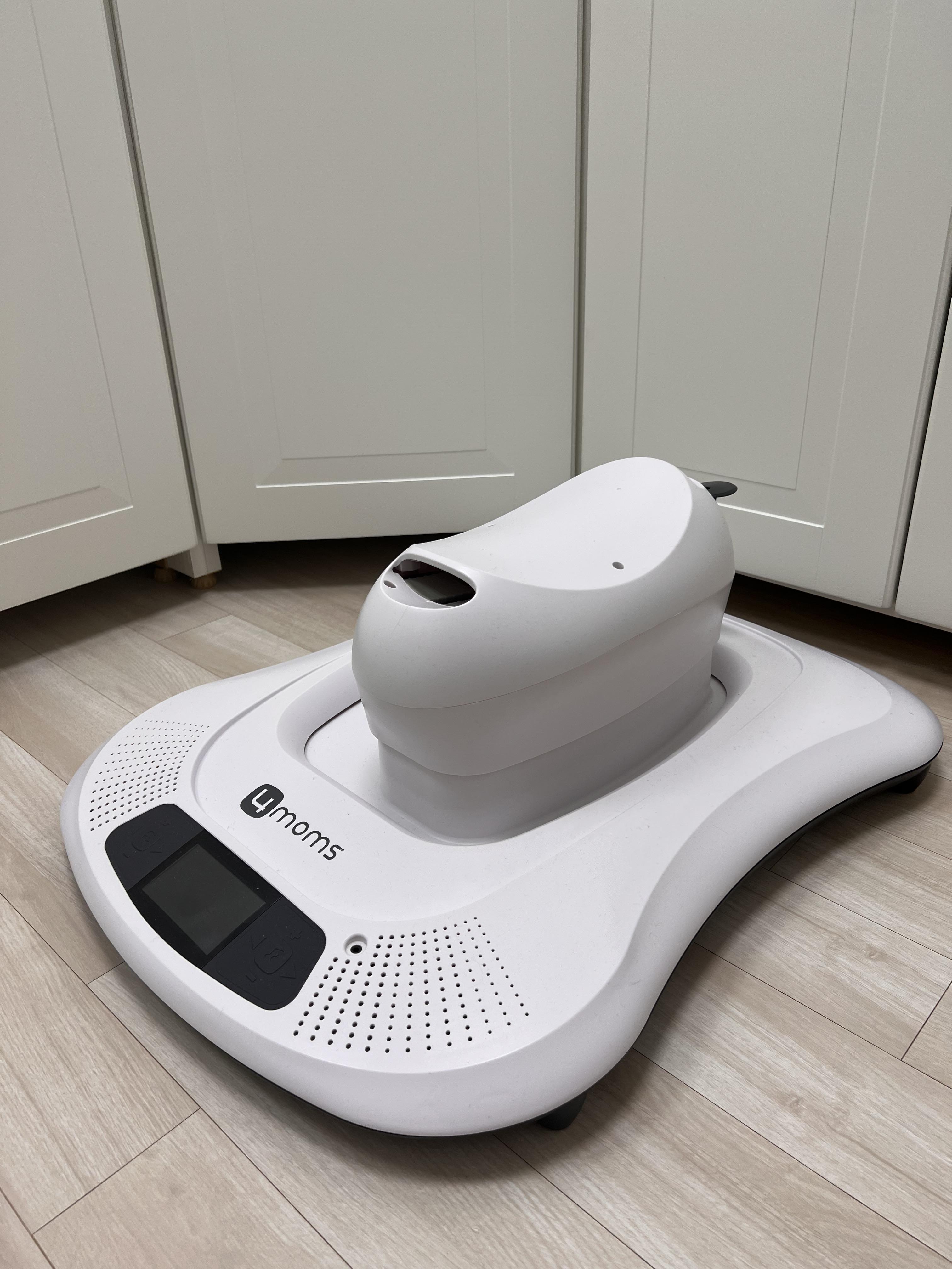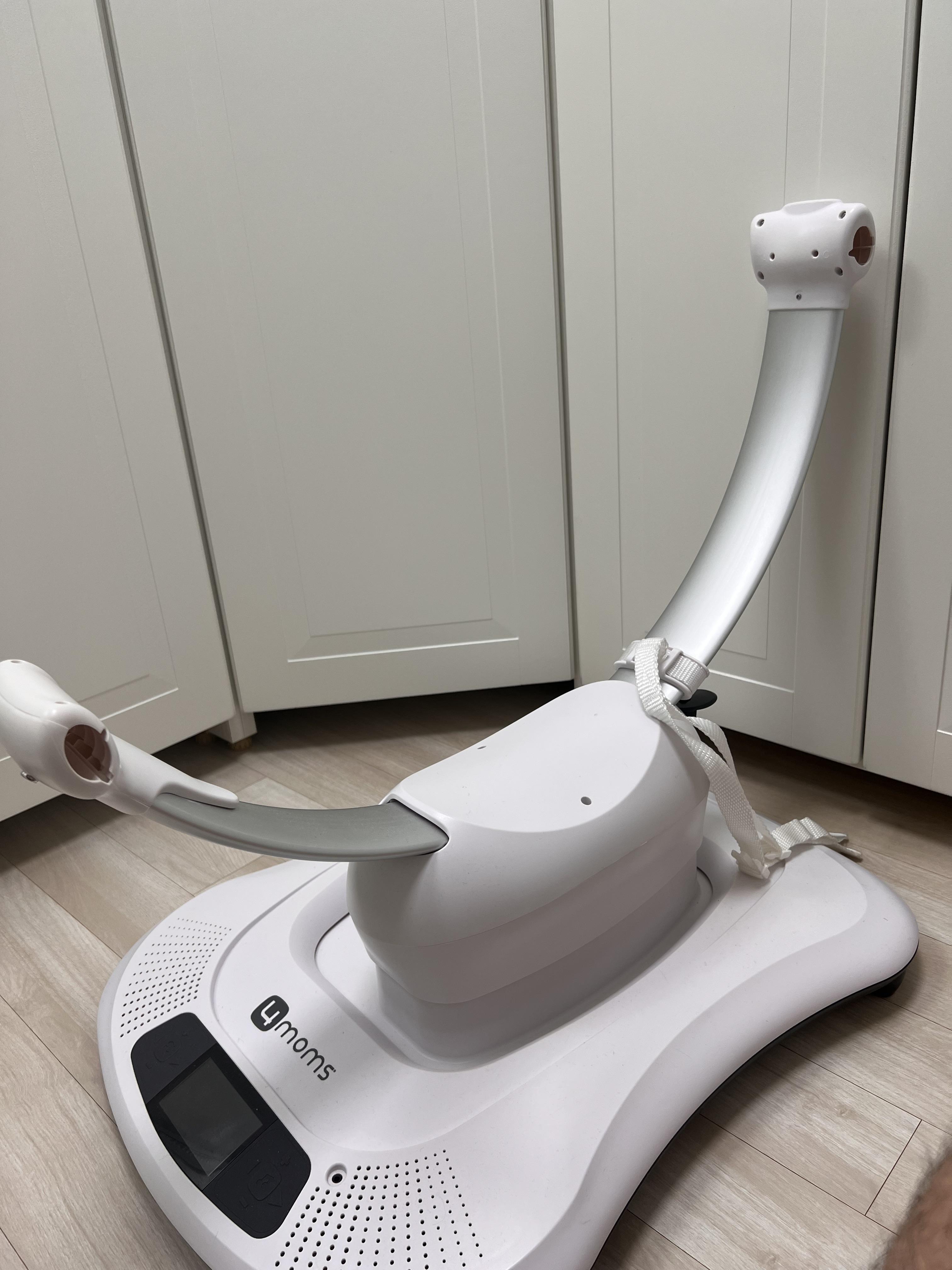 지퍼 부분에 시트의 지퍼를 연결해주고 나서 위에 모빌도 연결해주면 완성입니다. 이제 전원을 연결하고 저속도부터 다양한 움직임 모드를 아기에게 체험시키면 됩니다.