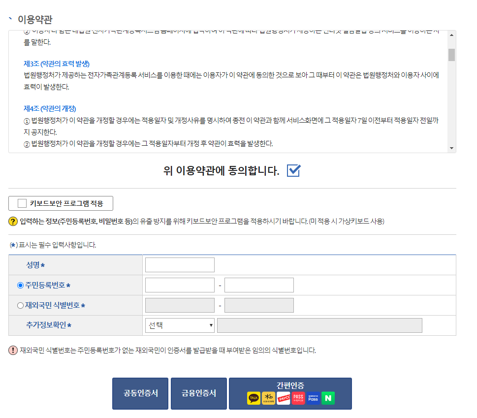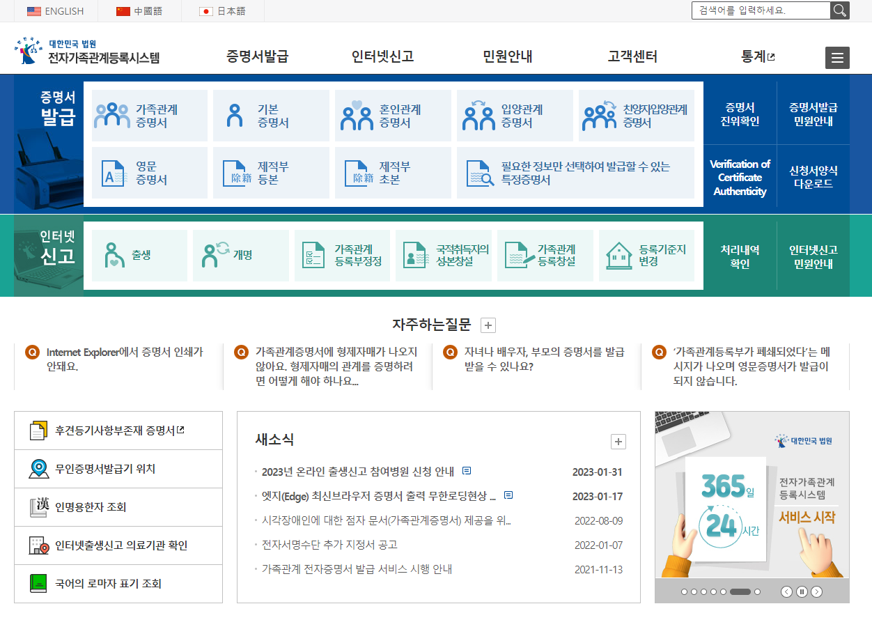 대한민국 법원 전자가족관계등록시스템EB[1/5]